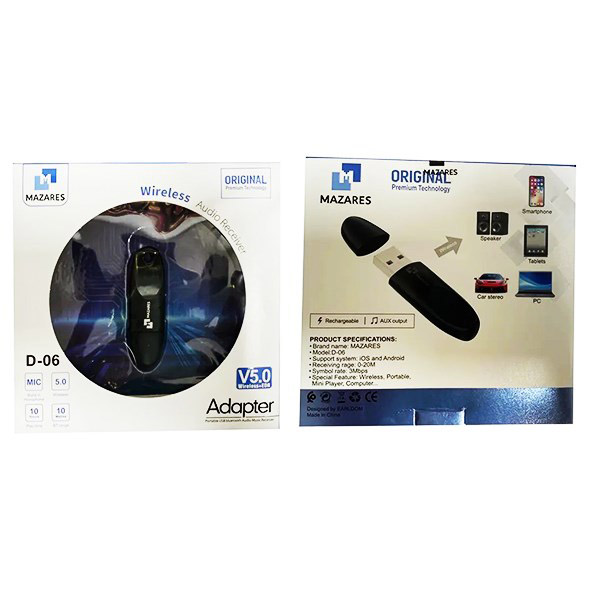 دانگل بلوتوث برند مازارس ساپورت از فاصله 0 تا 20 متر جنس بدنه : فلزی قابلیت پخش تا 10 ساعت